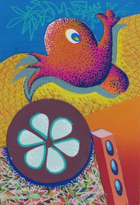 Deze zeefdruk wordt geleverd in een passepartout van 50x65, zonder lijst