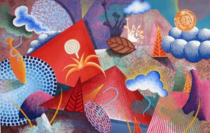 2016Ruimte met in onlogisch en logisch verband staande deels herkenbare figuren.