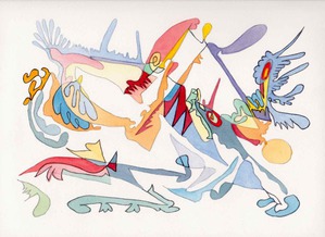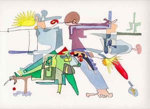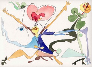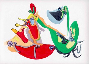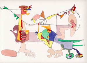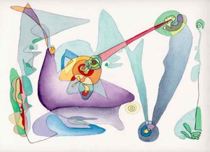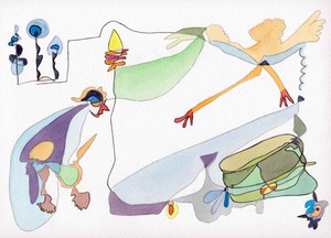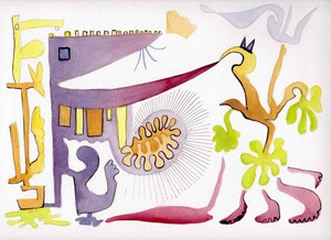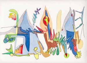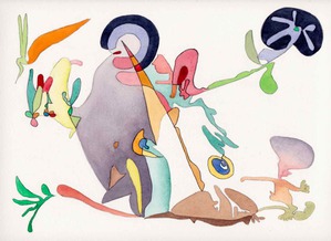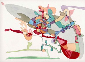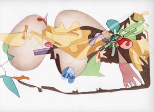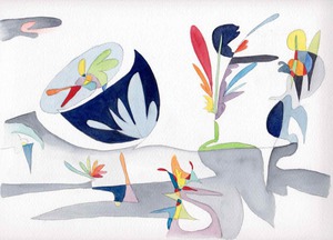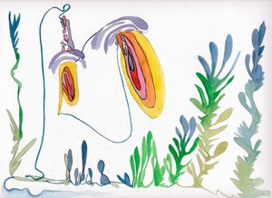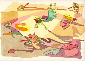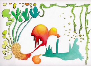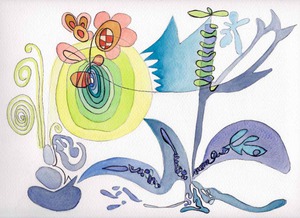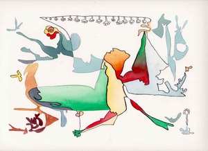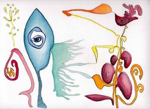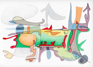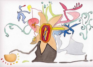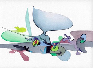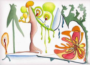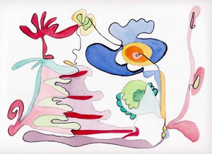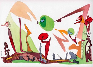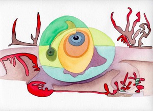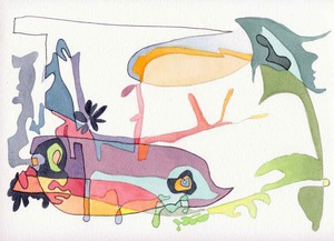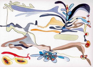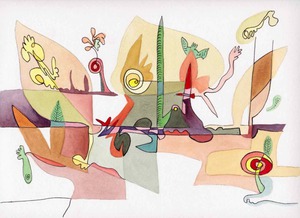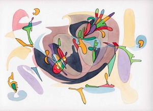 Intuitieve tekeningen, bewerkt met aquarel en oost- indische inkt.