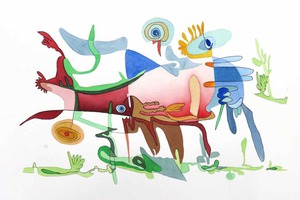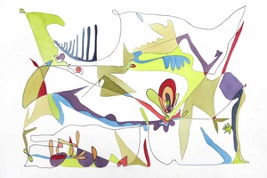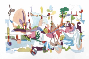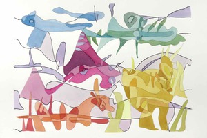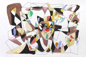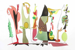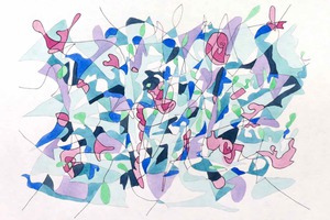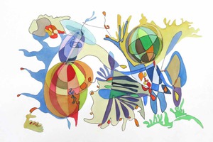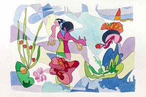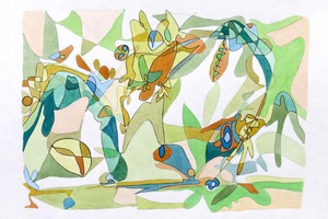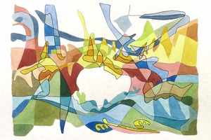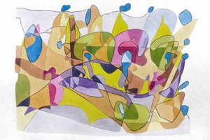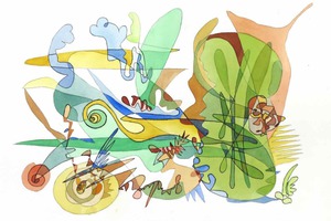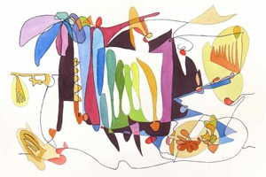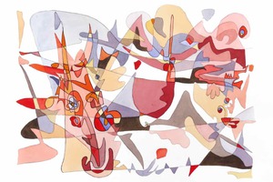 Intuitieve tekeningen uitgewerkt met aquarelverf en oostindische inkt.